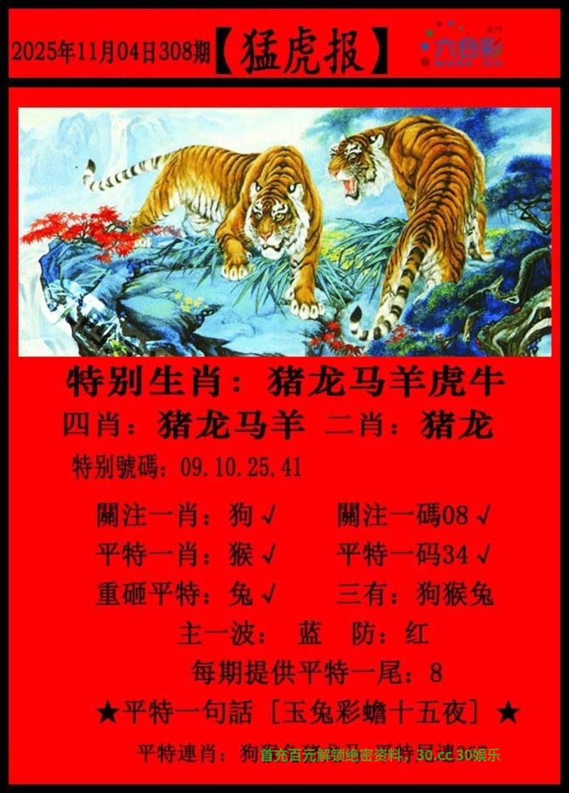 | 308期 | 猪龙虎猴蛇兔羊 | 开:兔39中 |